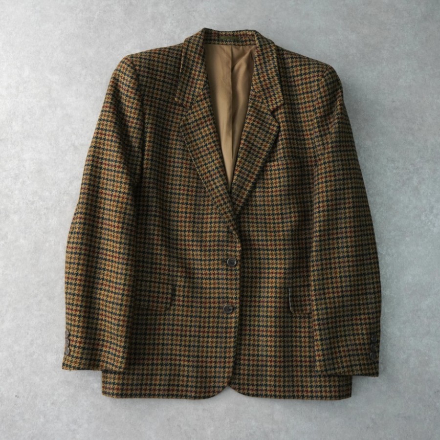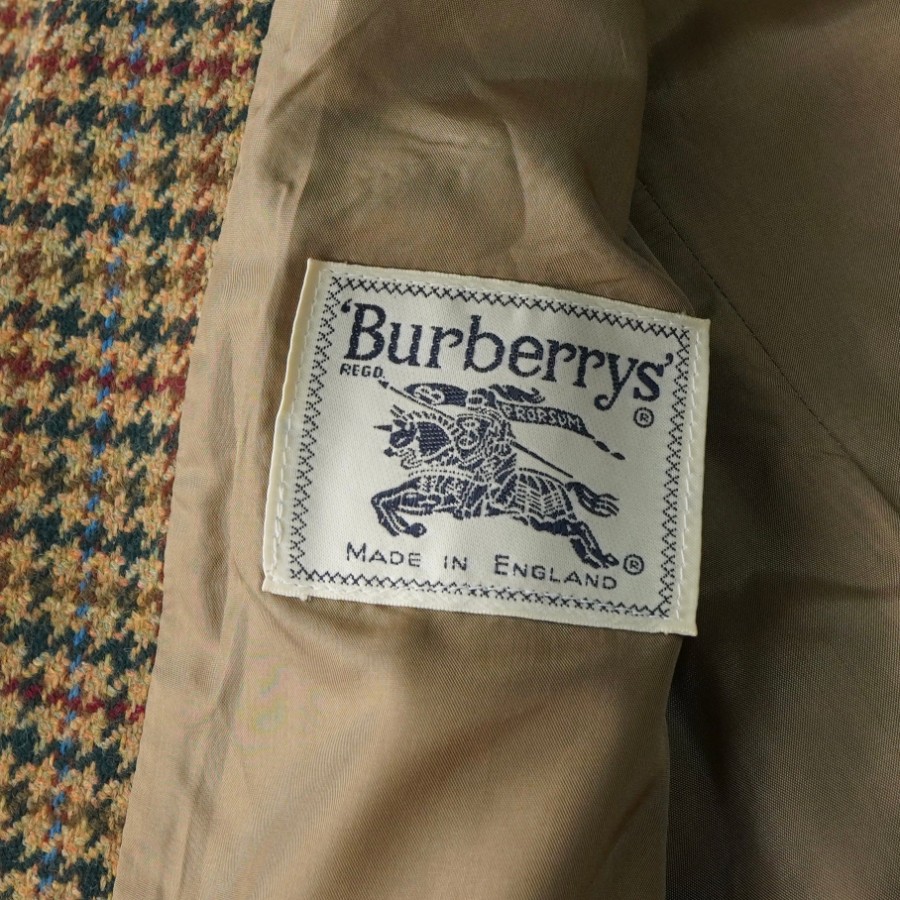 バーバリー ヴィンテージ 千鳥格子柄 ウール 2B テーラードジャケット 総裏地 レディース