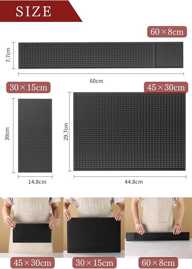 「セット内容」バーマット 1枚入り、2枚入り 「サイズ」15 x 30cm 厚さ1cm、45 x 30cm 厚さ1cm、60 x 8cm 厚さ1c「カラー」ブラック「素材」PVC(ポリ塩化ビニール)製