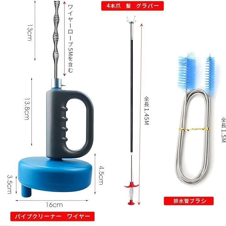 サイズ: パイプクリーナー本体5M+ 4本爪 髪 グラバー1.45M |