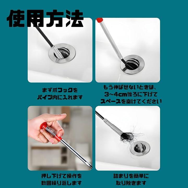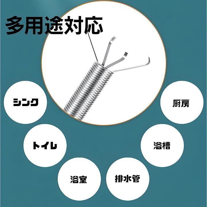「強力なつまり解消」このパイプクリーナーは、各種の長さを活かして、風呂やトイレ、洗面所の深い部分に潜む頑固なつまりを効果的に解消します。