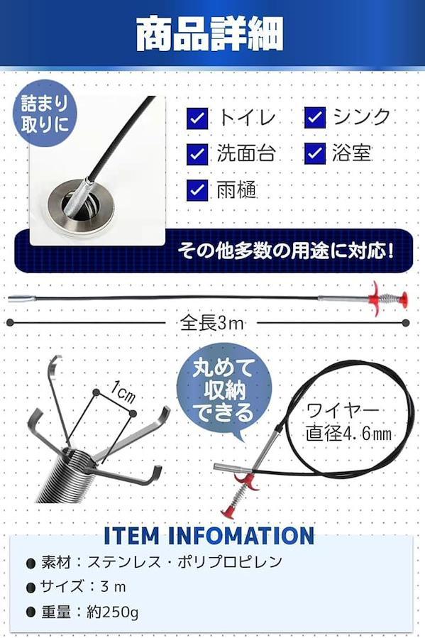 「商品詳細」素材:ステンレス・ポリプロピレンサイズ:3 m/重量:約250g/
