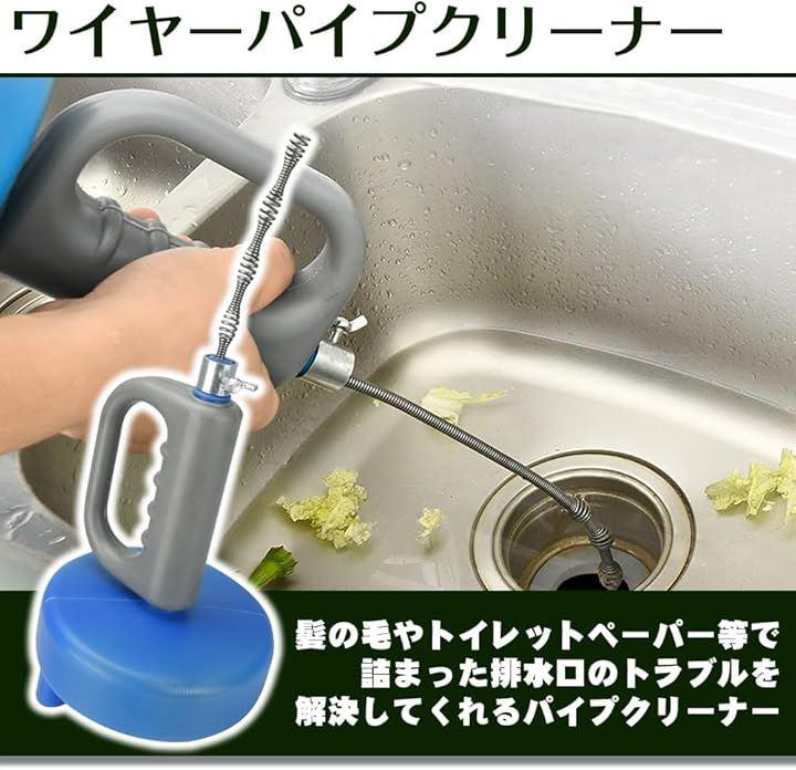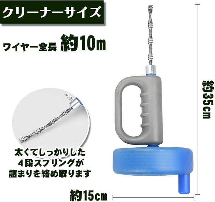 「セット内容」ワイヤー式パイプクリーナーx1点 「サイズ(約)」ワイヤー:10m 本体:35cmx15cm *排水口内径2センチ以上使用可能