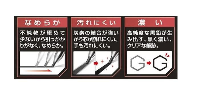 ・高純度グラファイト(黒鉛)を使用した、黒く濃い、クリアな筆跡のシャープ替芯です。 ・極めて不純物の少ない高純度黒鉛を使用し、炭素原子同士の 結合が強固になり、従来よりも強度がアップしました。 ・黒鉛結晶の高い潤滑性を活かして、さらになめらかに書けるようになりました。