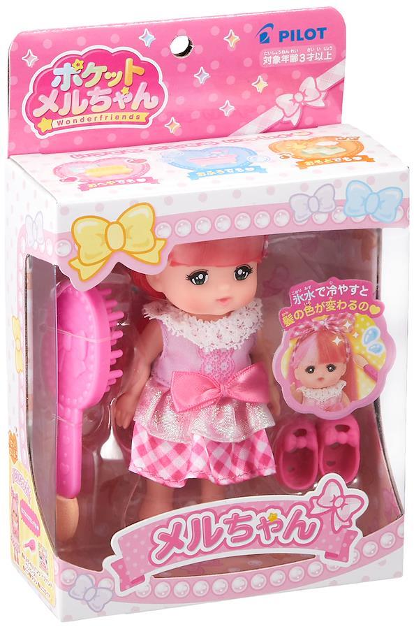 手のひらサイズで、いつでもどこでもつれて遊べるポケットメルちゃんシリーズ。メルちゃんは氷水で冷やすと髪の色がピンクから濃いピンクに変化するよ。手で温めると元の色に戻ります。 ポケットメルちゃんシリーズ 対象年齢:3歳以上 セット内容:メルちゃん(パンツ・ヘアバンド・ワンピース付)、くつ、ブラシ、ミニガイド 手のひらサイズで、いつでもどこでもつれて遊べるポケットメルちゃんシリーズ。メルちゃんは氷水で冷やすと髪の色がピンクから濃いピンクに変化するよ。手で温めると元の色に戻ります。