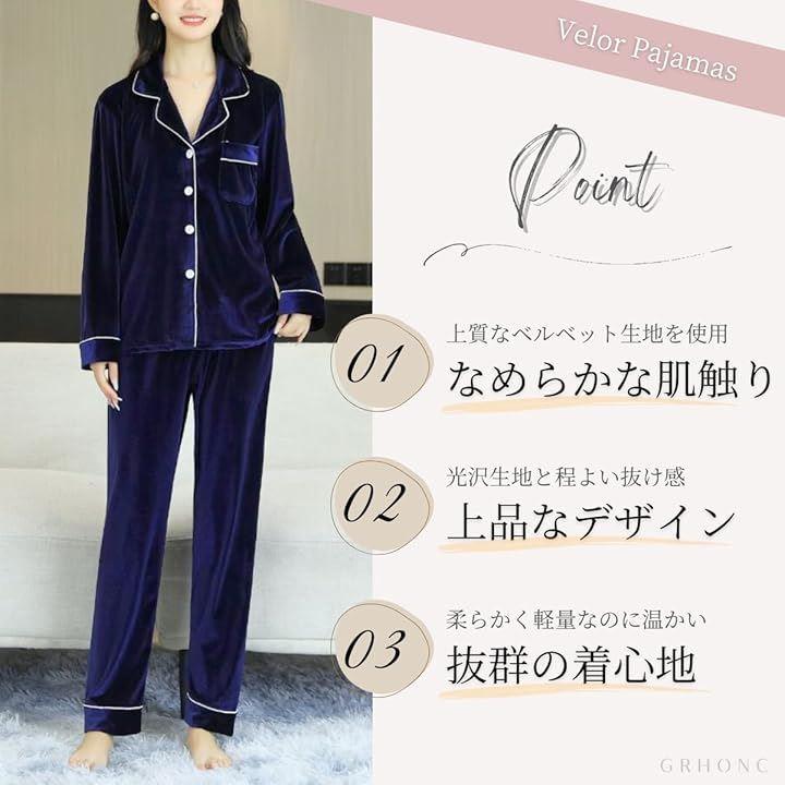「商品特徴」上質なベルベット生地を使用したなめらかパジャマセット。