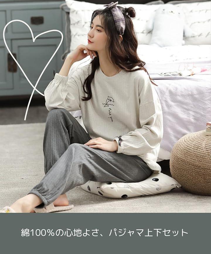柔らかい薄手長袖の綿100%レディースパジャマは、一年中活躍するルームウェア 部屋着 ナイトウェアです。
