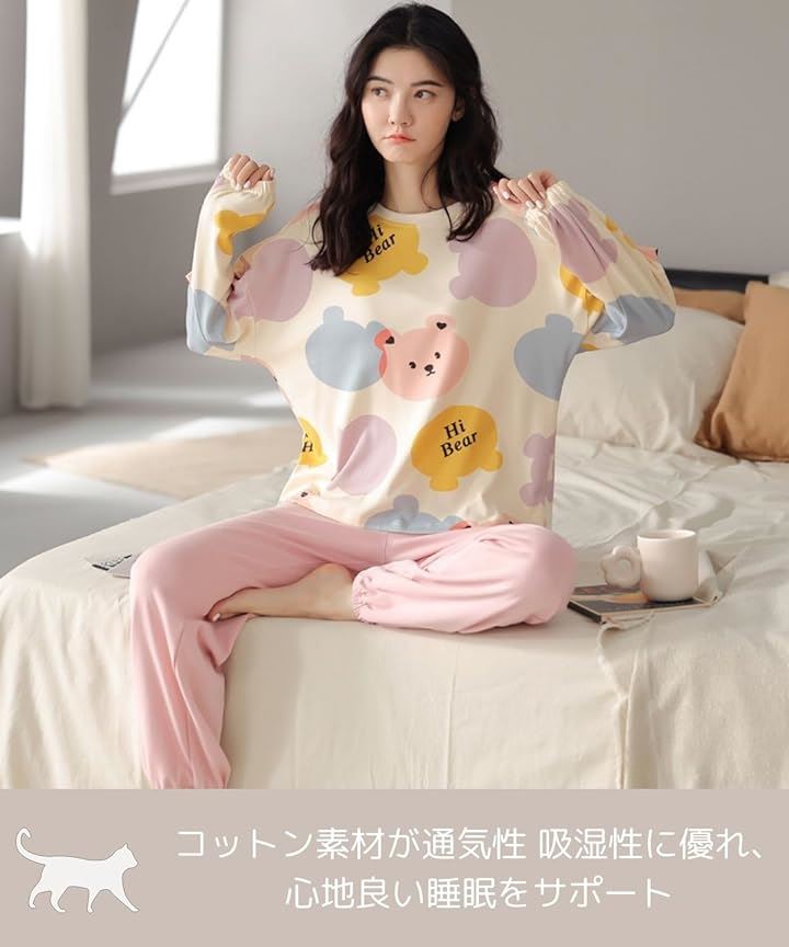 柔らかい薄手長袖の綿100%レディースパジャマは、一年中活躍するルームウェア 部屋着 ナイトウェアです。