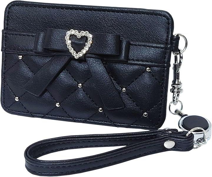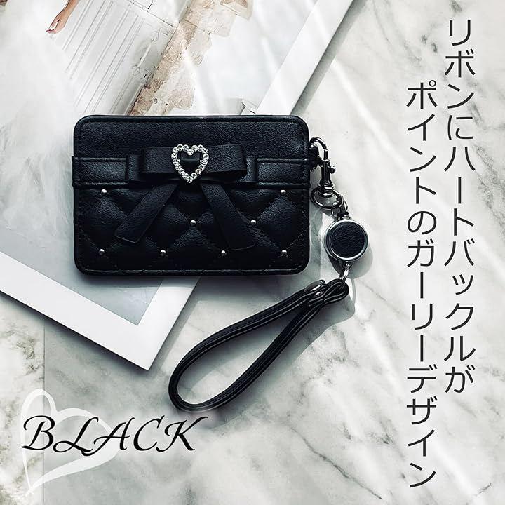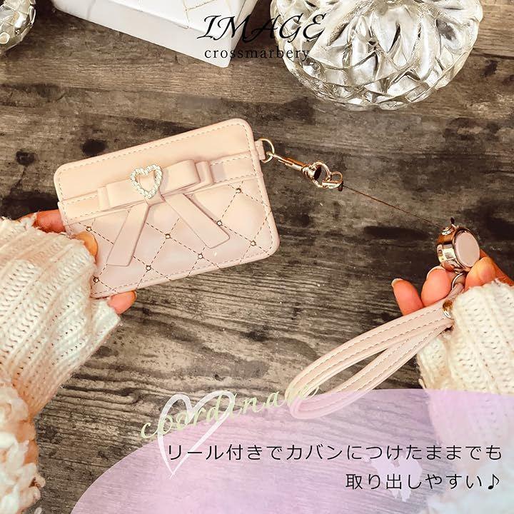 大きなリボン&ハートが可愛いアクセントになったリール付きのパスケース。