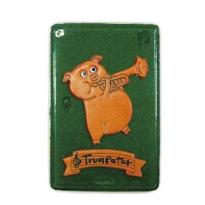 パスケース 定期入れ 楽器&動物 トランペットぶた パス IDカードホルダー