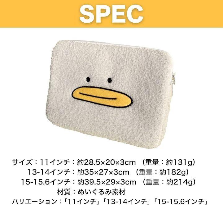 「商品仕様」サイズ13-14インチ : 約35x27x3cm(重量 : 182g)/ 材質 : ぬいぐるみ素材 *バリエーションは、「11インチ」「13-14インチ」「15-15.6インチ」がございます。