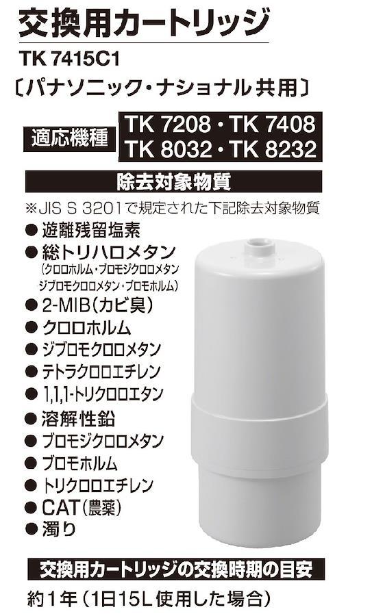 パナソニック アルカリイオン整水器 交換用カートリッジ TK7415C1