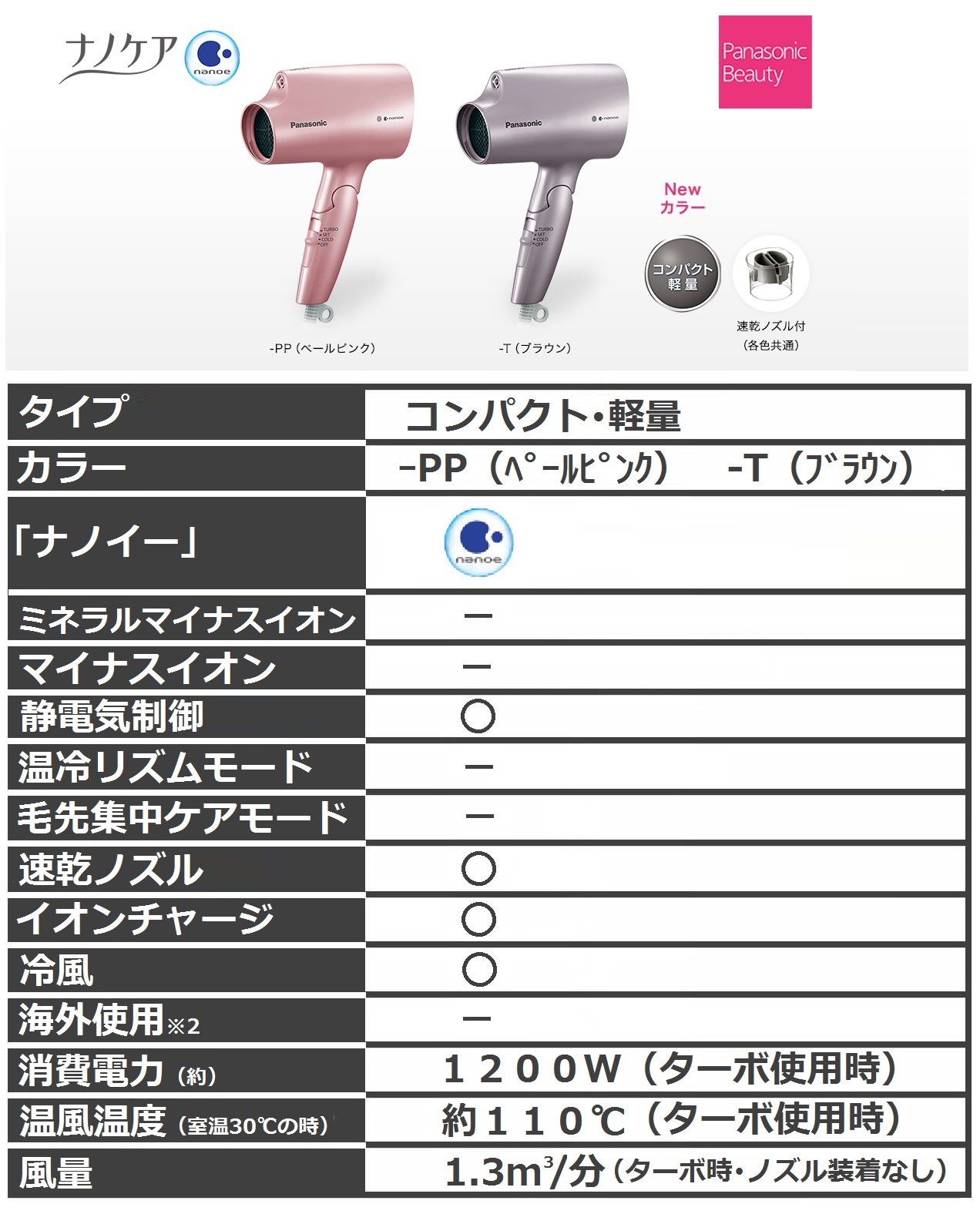 軽くて使いやすいコンパクトサイズ。ボディは小さくても、風量1.3 ?/分でパワフルドライ。ヘアードライヤー ナノケアの中で一番軽く、重さが気になる方におすすめ。