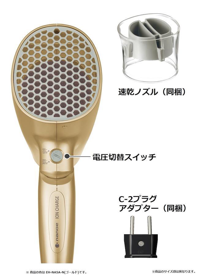 商品紹介「ナノイー」で髪のうねりを整え、なめらかな指通り&うるおい地肌へ。速乾ノズルで毛束をほぐし、スピーディーに乾燥。微細な「ナノイー」が髪に浸透、髪の水分バランスを整えうねりを抑制。うるおいを与え、地肌ストレスの原因となる乾燥をおさえ、健やかな地肌を保ちます。さらに、付属の速乾ノズルで速く美しく、髪を乾かします。100-120V/200-240Vの簡単切替で、海外で使える。※11000/1400Wでパワフルドライ&コールド(冷風)モードを搭載。海外でも、ツヤツヤスタイリング。男女共に受容性の高いNEWカラーを採用。※1A-2タイプ、C-2タイププラグの使えない地域でご使用の場合には、その国や地域に合わせて別途プラグアダプターをお買い求めください。ご注意(免責)>必ずお読みください【パナソニック製品の修理に関するお問い合わせ】パナソニック修理ご相談窓口 TEL:0120-878-554受付時間:9:00~19:00 (日祝日及び年末年始9:00~17:30)インターネットより「パナソニック修理」で検索