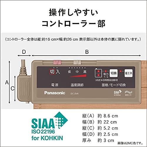 商品紹介お掃除かんたん! (防水*・抗菌(※《3V4R》【試験機関】〈コントローラー部・リモコン〉(一財)カケンテストセンター、〈表面材〉(一財)ボーケン品質評価機構【試験方法】JIS Z 2801(ISO22196法)【抗菌方法と場所】〈コントローラー部〉ケース・主電源つまみ:無機抗菌成分(銀系)を樹脂材料に練り込み/ネームプレート:無機抗菌成分(銀系)をフィルム表面に塗装、〈表面材〉有機抗菌成分(窒素硫黄系)を表面材に塗装、〈リモコン〉ケース:無機抗菌成分(亜鉛系)を樹脂材料に練り込み/各スイッチ:無機抗菌成分(銀系)を樹脂材料に練り込み【試験結果】抗菌活性値2.0以上、《2V4・1V4》【試験機関】〈コントローラー部〉(一財)カケンテストセンター、〈表面材〉(一財)ボーケン品質評価機構【試験方法】JIS Z 2801(ISO22196法)【抗菌方法と場所】〈コントローラー部〉ケース・電源つまみ・温度調節つまみ:無機抗菌成分(銀系)を樹脂材料に練り込み/ネームプレート:無機抗菌成分(銀系)をフィルム表面に塗装、〈表面材〉有機抗菌成分(窒素硫黄系)を表面材に塗装【試験結果】抗菌活性値2.0以上※)・防カビ(※【試験機関】(一財)日本繊維製品品質技術センター【試験方法】JIS Z 2911プラスチック製品の試験方法A【防カビ方法と場所】有機成分(窒素硫黄系)を表面材に塗装【試験結果】0※)・防汚・ダニバリア) *コントローラー部は防水ではありません2面切り替え3通り暖房。消費電力量約30%省エネ(※パナソニック独自の試験条件による評価。外気温5℃、室内温度23℃、フローリング、設定温度「中」設定で通常安定後1時間あたりの消費電力量を測定。〈V4Rシリーズ〉DC-3V4R省エネモード=283Wh、DC-3G1通常モード(省エネモード搭載なし)=421Whとの比較、〈V4シリーズ〉DC-2V4省エネモード=160Wh、DC-2F1通常モード(省エネモード搭載なし)=275Whとの比較、〈1V4〉DC-1V4省エネモード=80Wh、DC-1F1通常モード(省エネモード搭載なし)=123Whとの比較。※)(省エネモード時)。待機電力ゼロ。2面切り換え・ひかえめモード・遮音・外せるコード・切り忘れ防止ご注意(免責)>必ずお読みください【パナソニック製品の修理に関するお問い合わせ】パナソニック修理ご相談窓口 TEL:0120-878-554受付時間:9:00~19:00 (日祝日及び年末年始9:00~17:30)インターネットより「パナソニック修理」で検索