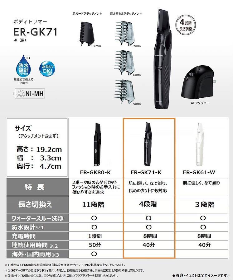 3営業日以内に発送≪新品未開封品≫:パナソニック ボディトリマー お風呂剃り可 男性用 黒 ER-GK71-K