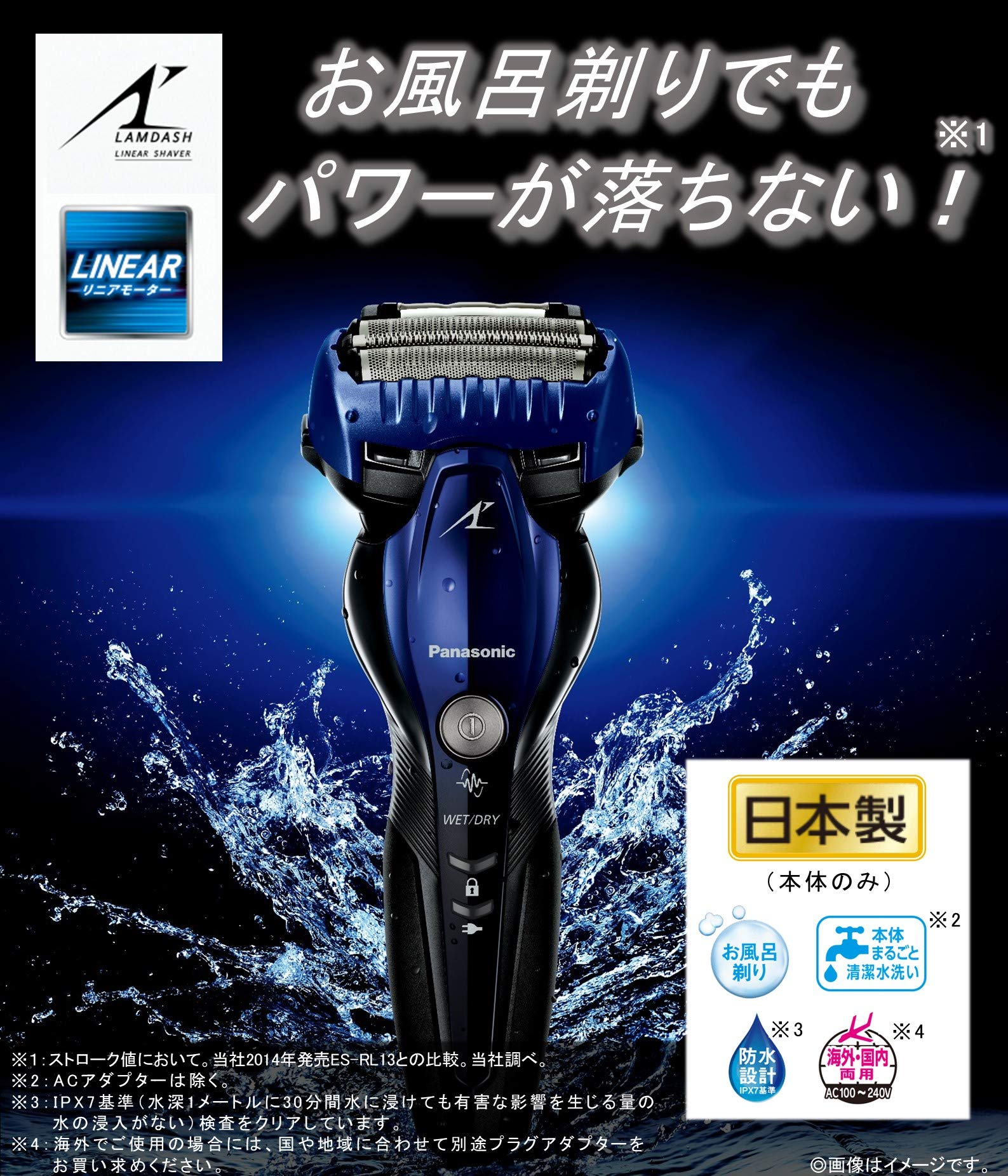 ブランド パナソニック(Panasonic)商品の推奨用途 ヒゲ特徴 Waterproof電源 バッテリー式モデル名 ラムダッシュ付属コンポーネント 収納ケース,シェーバーホルダー,専用オイル,掃除用ブラシ、商品の重量 0.5 グラム色 青ブレードの材質 金属ヘッドタイプ 往復式