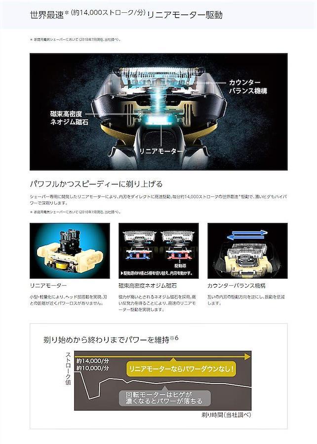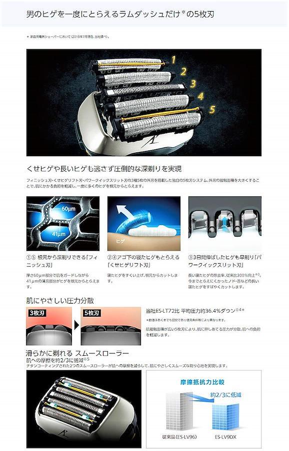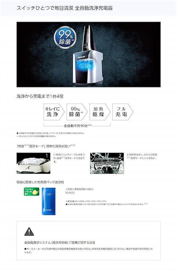 独自技術を結集させた5枚刃システムが肌への圧力と剃り時間を軽減し、さらにやさしい深剃りへ。洗浄充電器付き限定モデル。3Dアクティブサスペンション&スムースローラー搭載。ヒゲの濃さをセンシングして自動でパワーコントロール「ヒゲセンサー」洗浄方法:自動洗浄・音波洗浄・水洗い。 本体寸法:170×75×60mm 質量(約):210g専用洗浄剤: ES-4LO3 ●専用替刃:セット替刃 ES9032・外刃 ES9175・内刃 ES9170