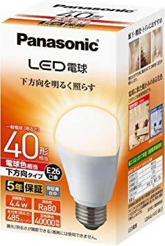 通常1-5営業日で発送:パナソニック LED電球 口金直径26mm 電球40形相当 電球色相当(4.4W) 一般電球 下方向タイプ 1個入り 密閉器具対応 LDA4LHEW2