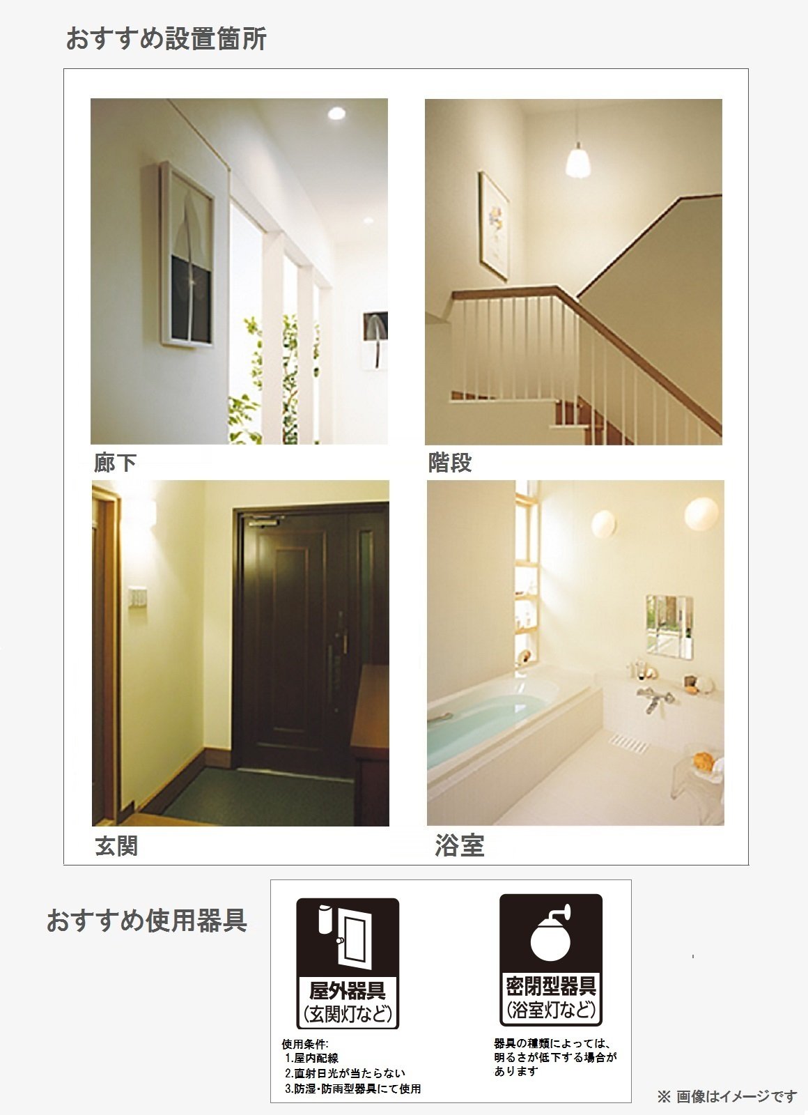 屋外器具対応、密閉型器具対応、 調光器対応非対応