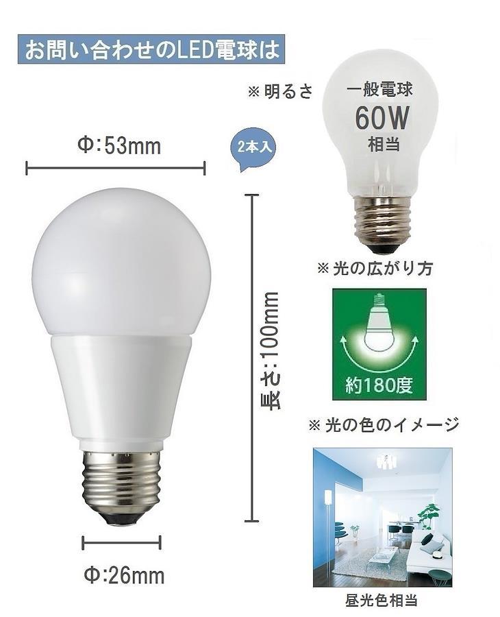 パナソニック LED電球 口金直径26mm 電球60W形相当 昼光色相当(7.3W) 一般電球・広配光タイプ 2個入 密