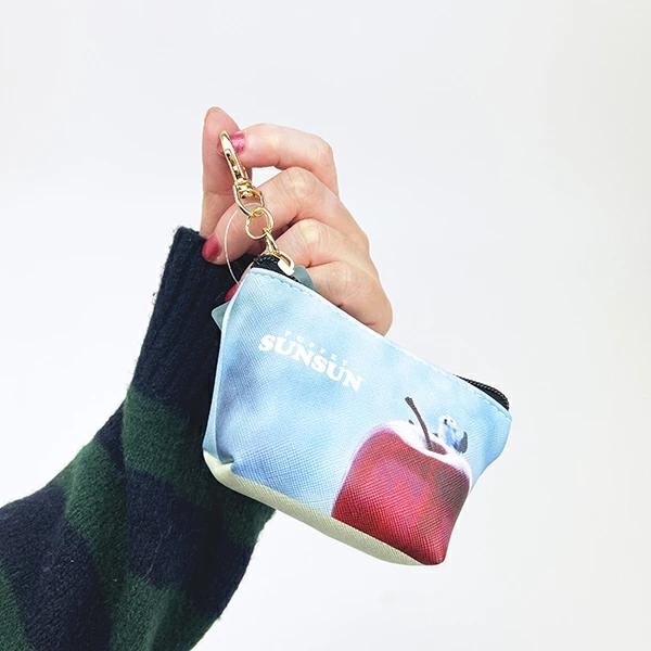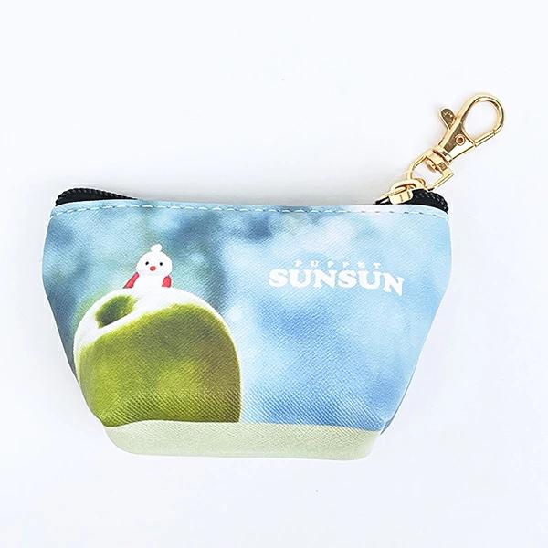 パペットスンスンの三角ミニポーチです。リップや絆創膏などの小物を入れるのにちょうどいいサイズ感♪引っ掛けがついているので、バッグなどにつけてすぐに使いたいアイテムを収納してサッと使えるのがgoodです☆彡