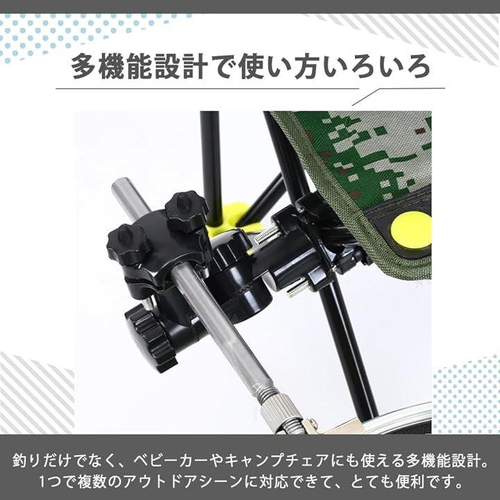 「多機能設計で使い方いろいろ」釣りだけでなく、ベビーカーやキャンプチェアにも使える多機能設計。