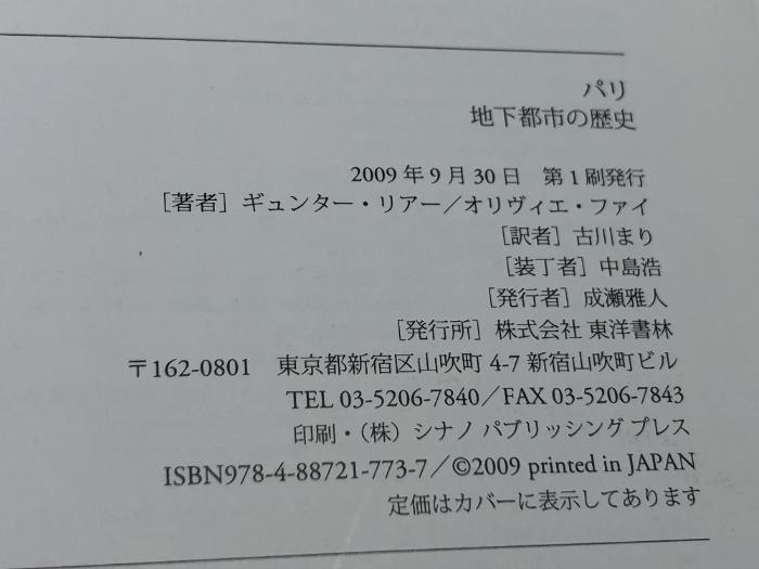 パリ地下都市の歴史 東洋書林 ギュンター リアー