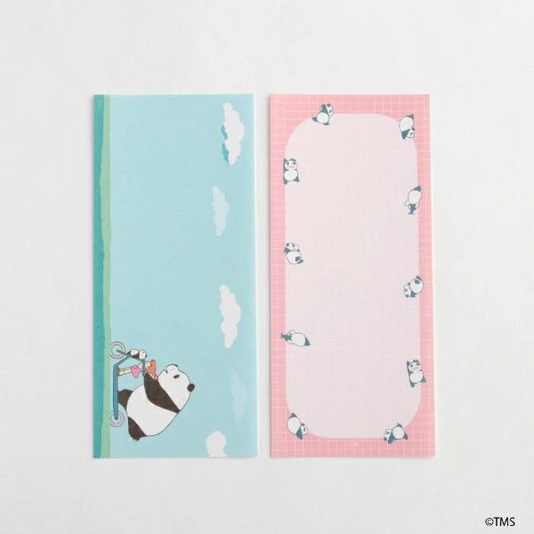 パンダコパンダの一筆箋です。可愛いらしい親子の様子やパンちゃん、パパンダの微笑ましいシーンがデザインされています☆2柄あってちょっとしたメモにもぴったりです♪