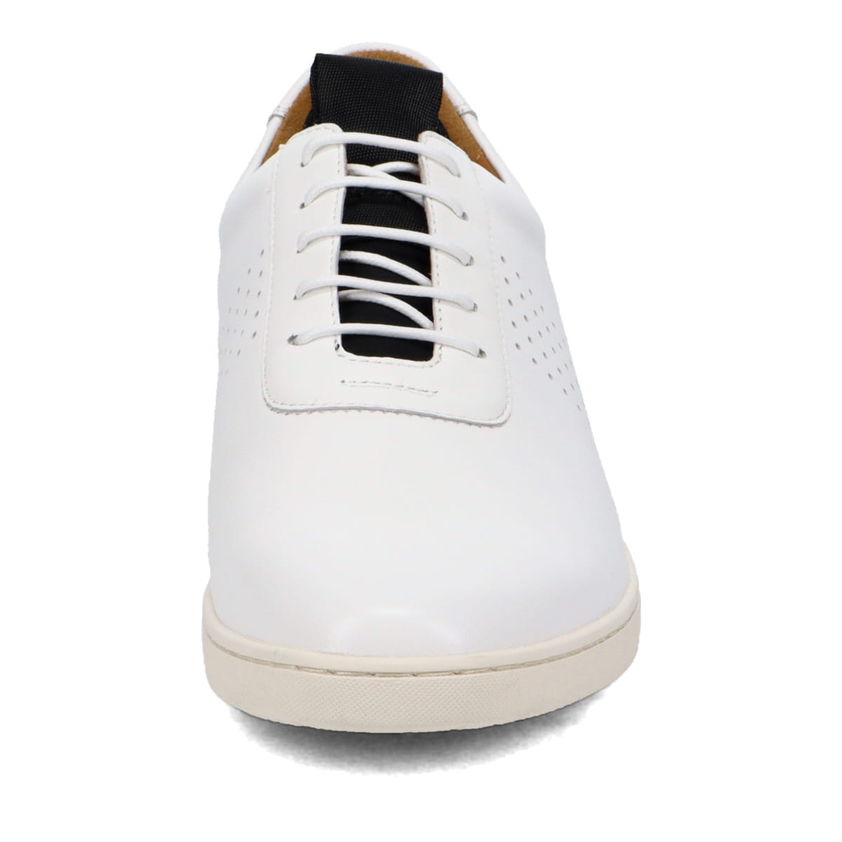 | パンチングライン・シープレザースニーカー 【素材】 アッパーにはやわらかなシープ(羊)革を用い、タン〜履き口にはライクラ(伸縮性のある繊維)が含まれた生地を使用しています。 ※本革を使用している為、多少のムラや小傷、個体差などがございます。 【デザイン】 柔らかなシープレザースニーカーにパンチングデザインと生地の履き口を合わせたカジュアルスニーカー。 生地部分に使用されているライクラ【lycra】とは、1959年に米国デュポン社で開発された、クモの糸のように細く透明で、引っ張ると4〜7倍にも伸び縮みする合成繊維のこと。 優れた伸縮性を持っているため、足への絶妙なフィット感を生みだします。 ゴム製の替え紐も付属しており、付け替える事で紐をほどくことなく、靴ベラ一本でスリッポンのように着用する事もできます。 シンプルなデザイン性でいつでもどこでも使いやすく馴染みやすい1足です。 【サイズ】 普段通常の革靴で25.5cm、スニーカーで26.5-27cmを着用するスタッフで<41/25.5cm>でジャストサイズでした。 ※サイズ感は個人差がございますので参考程度にお考え下さい。 ■ブランド...whoop'-de-doo' destruction ■カラー...BLACK,NAVY,WHITE ■アッパー素材....羊革×ライクラ(ポリウレタン繊維) ■底材.....ラバー ■ヒール...約2cm ■重さ(片足)...約375g ■製法...オパンケ製法 ■中国製 *上記は全て25.5cmで計測した数値です。 *多少の誤差が生じる場合がございますので予めご了承下さい。 whoop de doo co.,ltd whoop'-de-doo' フープディドゥ |