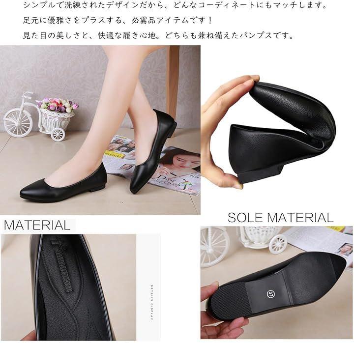 パンプス レディース ローヒール 靴 歩きやすい リクルート オフィス フォーマル 痛くない 疲れない 1cm 幅広 ラウンドトゥ プレーン 柔らかい ストレッチ 軽量 PUレザー 簡単に履ける