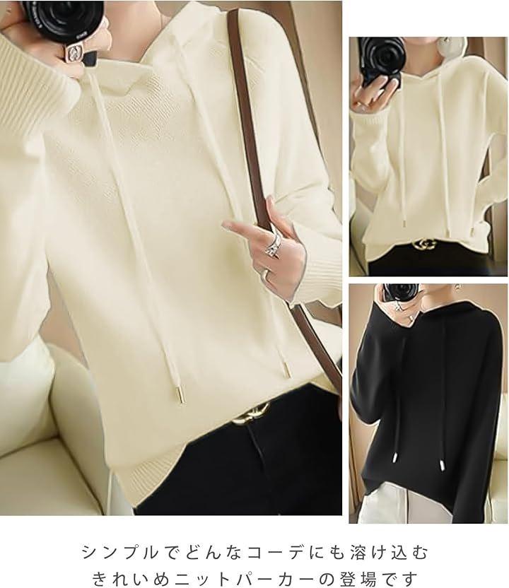 「きれいめカジュアルニット」 オフィスルックやきれいめなテイストにぴったりなハイゲージニットに、パーカーのカジュアルな可愛さをプラスしたニットパーカーの登場です。