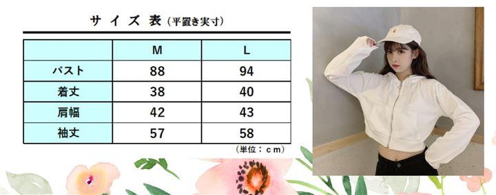・Mサイズ:バスト88cm 着丈38cm 肩幅42cm 袖丈57cm Lサイズ:バスト94cm 着丈40cm 肩幅43cm 袖丈58cm