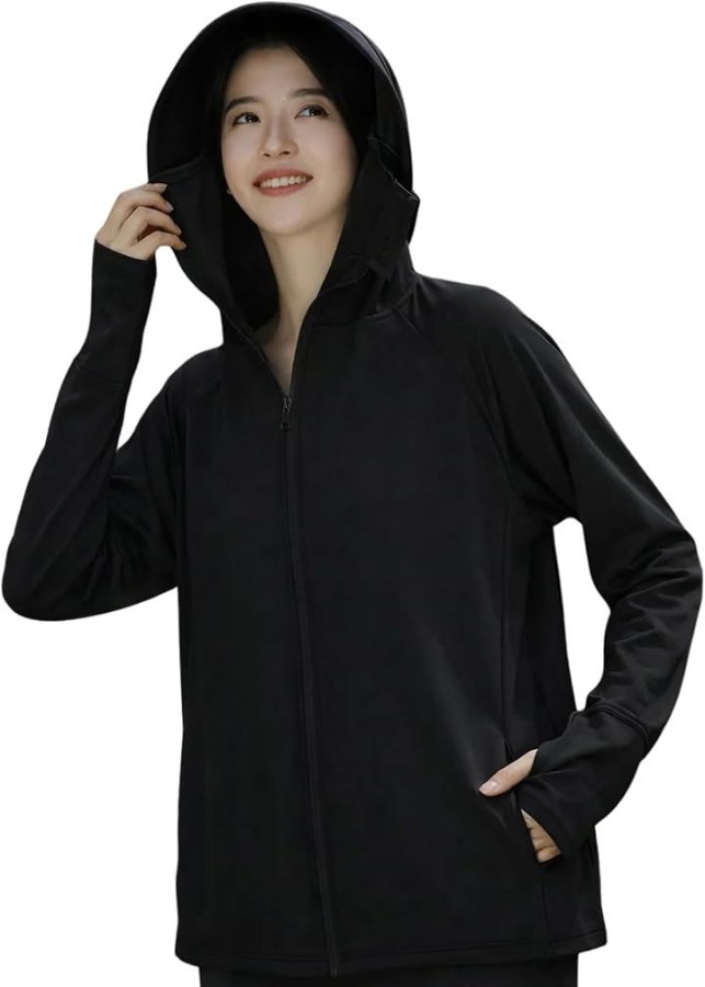 [ [ブブ オーハナ] パーカー フード サムホール 取り外し可能な ツバ 付き 吸汗速乾 軽量 薄手 通気性 羽織り ライトアウター ラッシュガード レディース ]