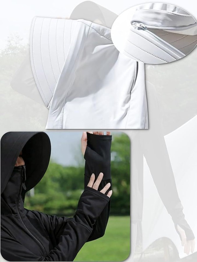 フルジップで鼻元まで覆え、サムホール付きで手の甲まで自然にカバー。