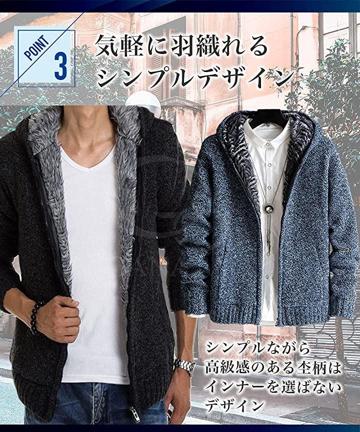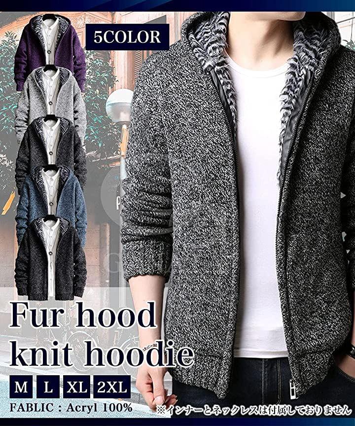 ・「ニット素材のフルジップパーカーが温かい」表面はニット素材、内側は毛足長めのファーが包み込むように温かい。