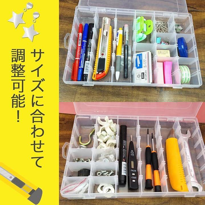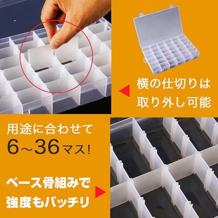 6~36分割までお好きな大きさに調節ができるのでイヤリング、ネックレス、ビーズ、指輪、釣りフック、小さな宝石等、大きさが違う物でも調節して綺麗に収納できます。