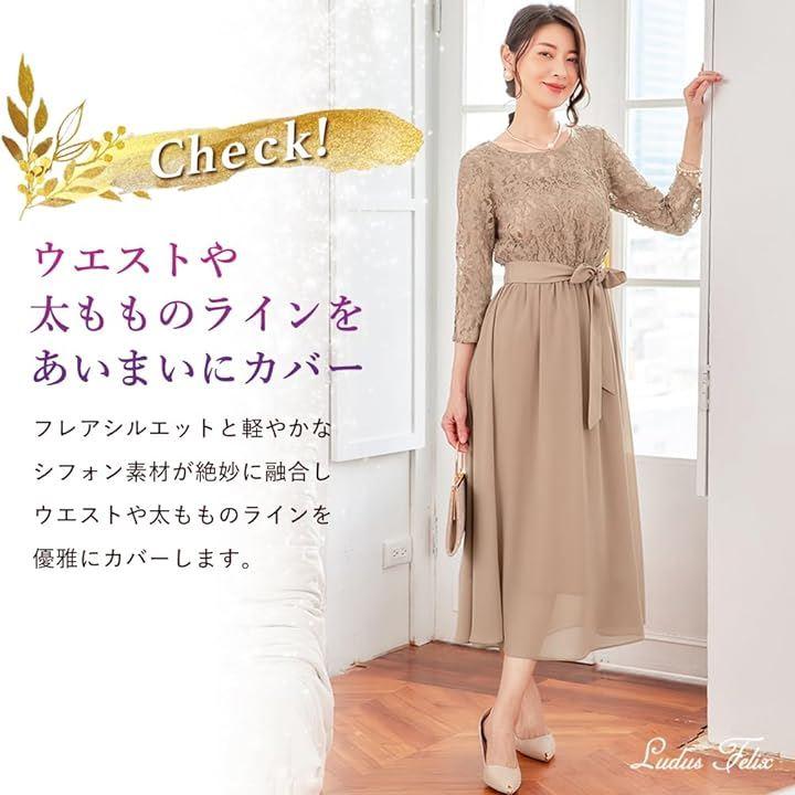 レースとシフォンの繊細な素材を融合させたこのパーティードレスは、結婚式や結婚式の二次会からパーティー、謝恩会、発表会、演奏会、特別なディナー、ビジネスイベントやセミナーのレセプション、デートまで、あらゆる場面で注目を集めること間違いなし。