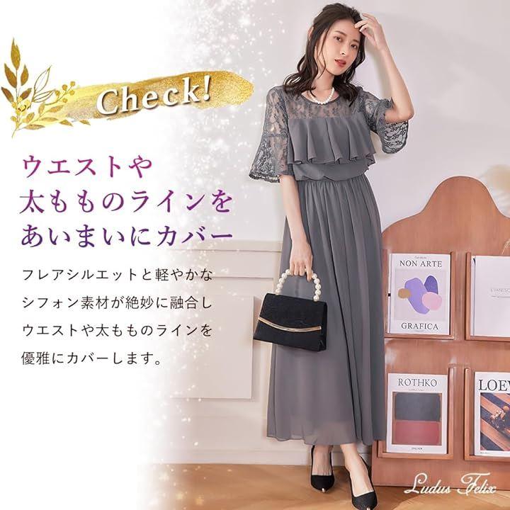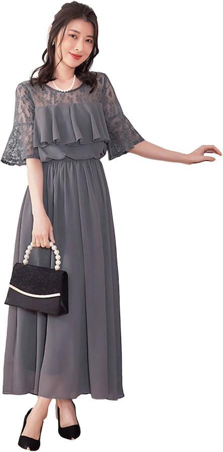 レースとシフォンの繊細な素材を融合させたこのドレスは、結婚式や結婚式の二次会からパーティー、謝恩会、発表会、演奏会、特別なディナー、ビジネスイベントやセミナーのレセプション、デートまで、あらゆる場面で注目を集めること間違いなし。