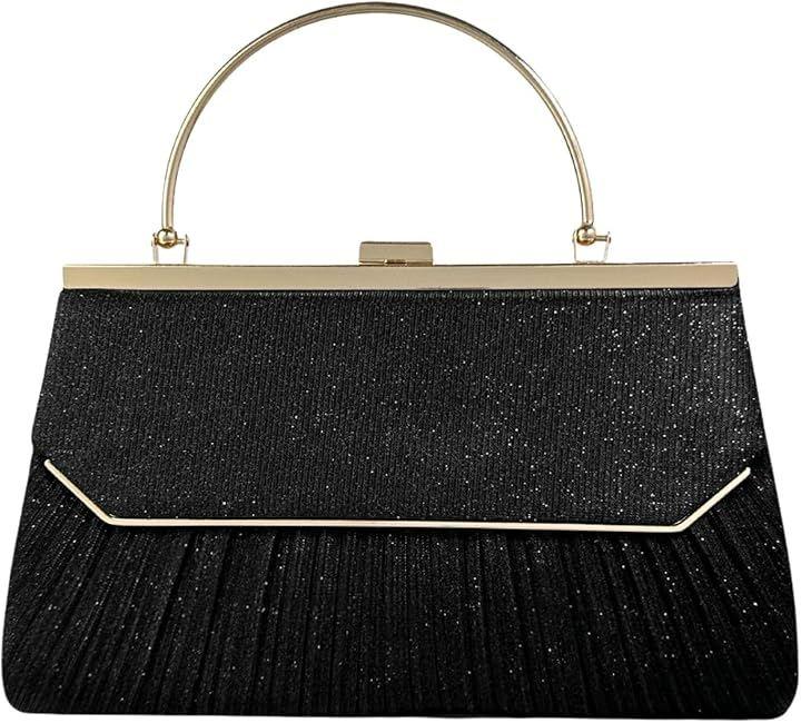 個性的なゴールドフレームに優雅なプリーツにラメ加工が美しくきらめく華やかなパーティーバッグ。