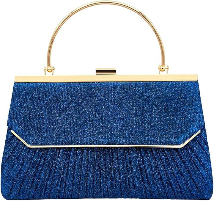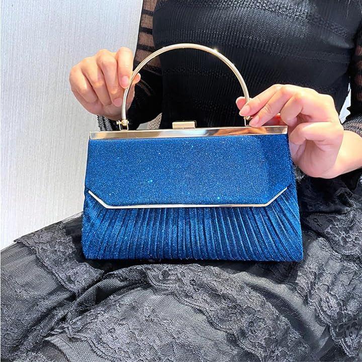 個性的なゴールドフレームに優雅なプリーツにラメ加工が美しくきらめく華やかなパーティーバッグ。