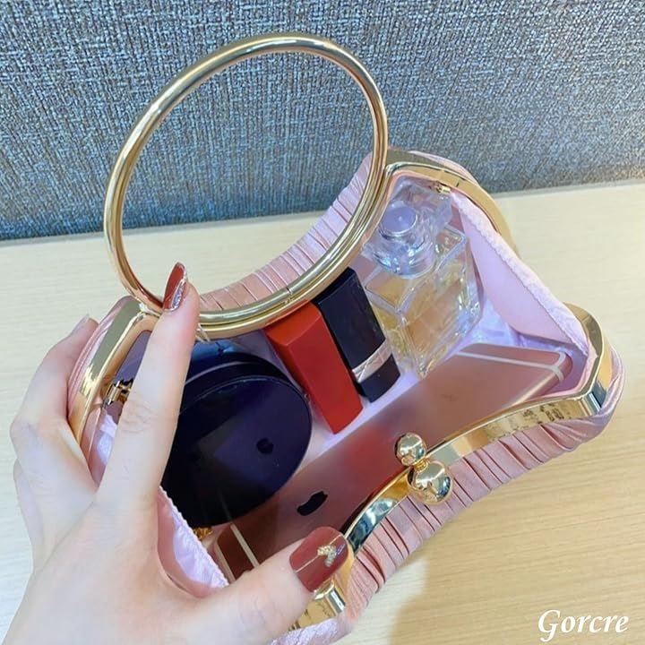 華やかなシーンにフェミニンな、がま口タイプのパーティーバックです。