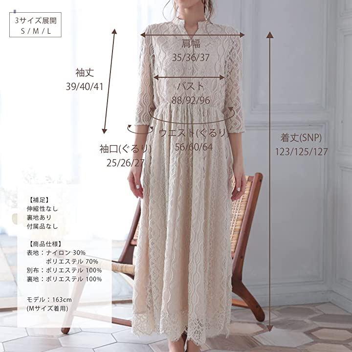 ・「Mサイズ/cm」 着丈(SNP):125 バスト:92 ウエスト:60 肩幅:36 袖丈:40 袖口:26 「Lサイズ/cm」 着丈(SNP):127 バスト:96 ウエスト:64 肩幅:37 袖丈:41 袖口:27