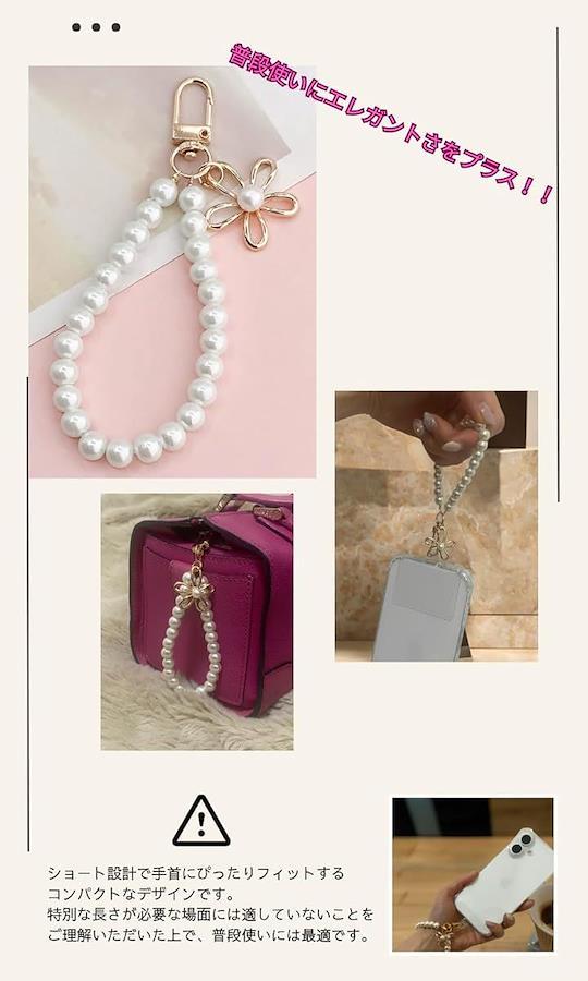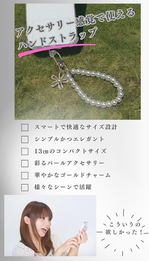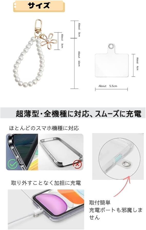 ・洗練されたデザイン 上品なホワイトパールと輝くゴールドパーツが調和したデザインは、どんなスマホケースにもエレガントなアクセントを加えます。