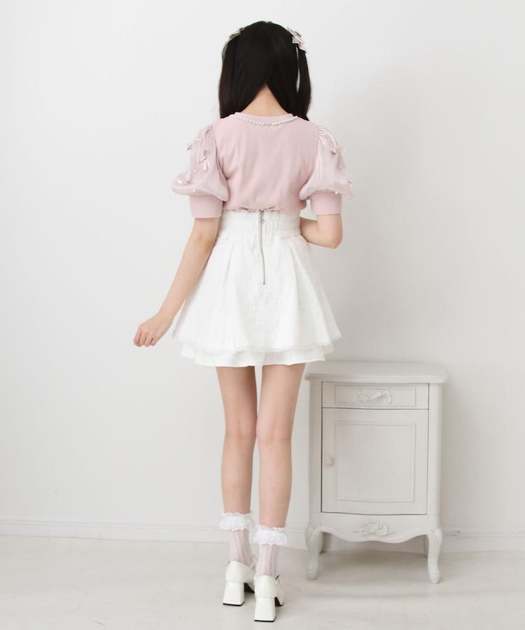 ラメは控えめにキラキラと輝き、袖にはパールとリボンを散らし、まるでお姫様みたいなトップス♪