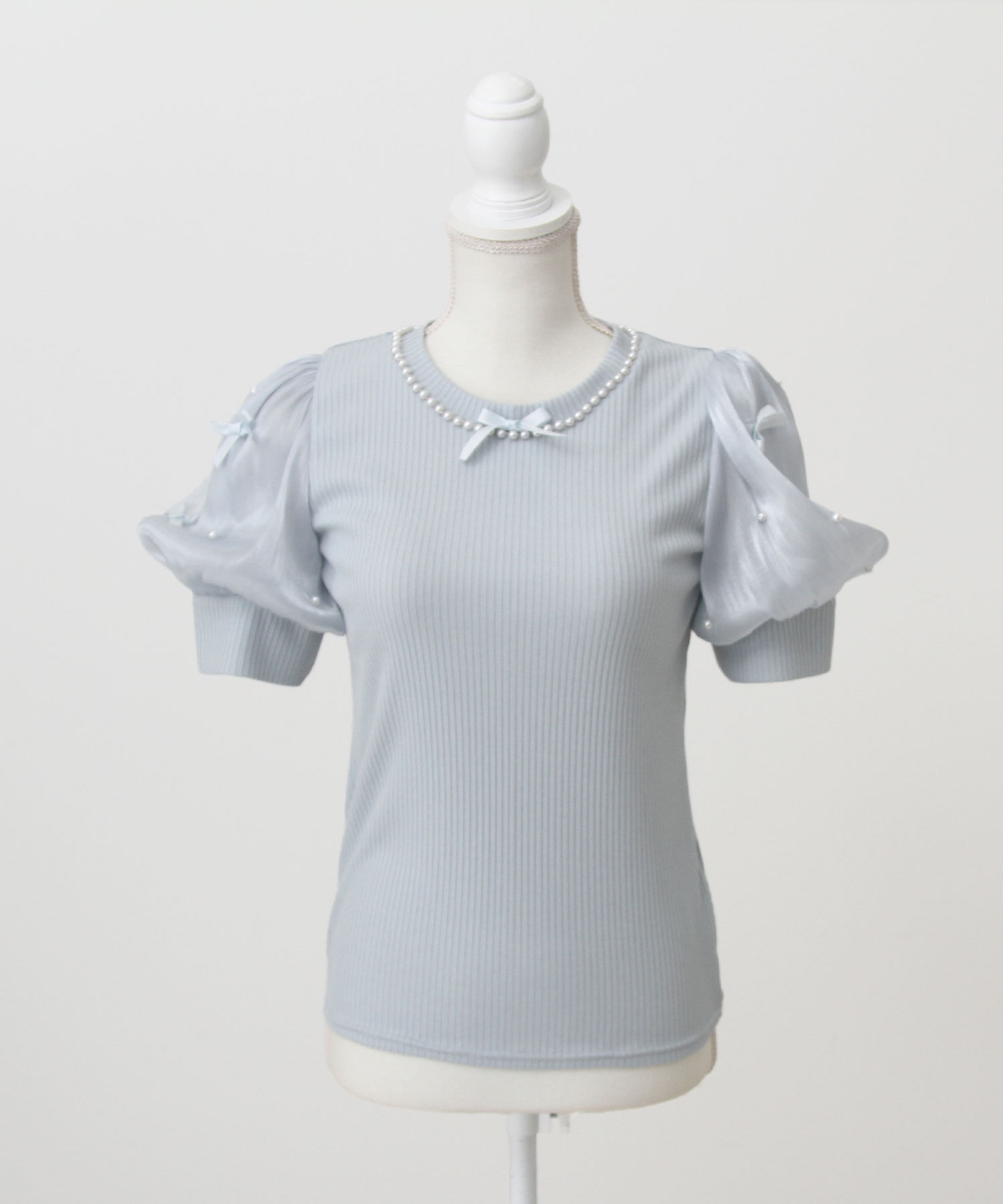 まるでお姫様のようなパフ袖♪ネックレスデザインがかわいいリブカットトップス。