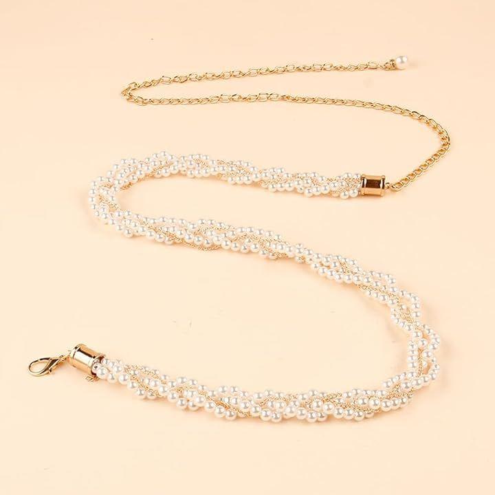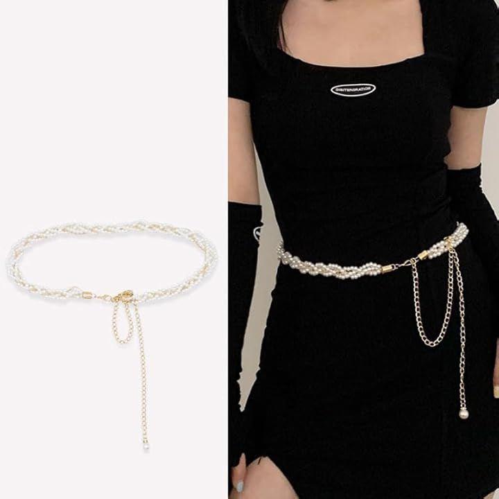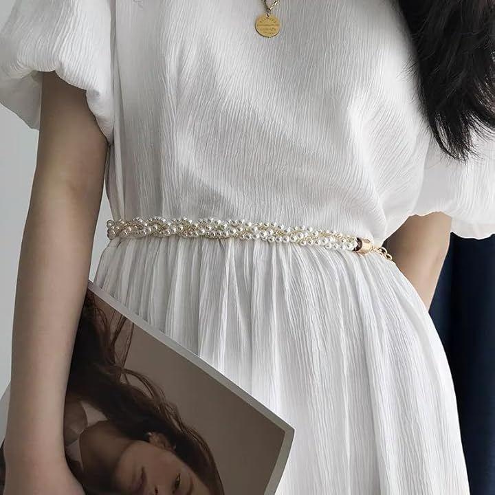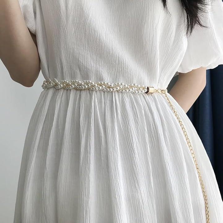 今季大注目のトレンドITEM。パールとチェーンのデザインがかわいいレディースベルトです。