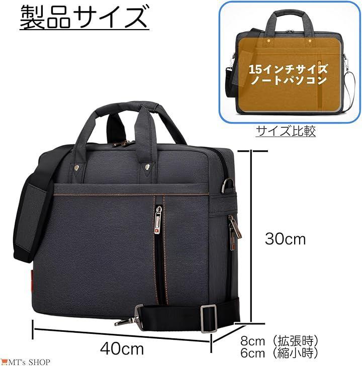 「サイズ」: 横幅 40cm 、高さ 30cm 、マチ 8cm(拡張時)6cm(縮小時) 、背面スーツケース持ち手固定用ベルト幅:24cm 、ショルダーベルト(長さ調整可能): 最長110cm「重量」: 880g「ポケット数」:ファスナーポケット 前面(x2)、背面(x1) / 内側:メインポケット x1、クッションポケット x1、オープンポケット x2「前面ポケット内部」:オープンポケット x2、ペンホルダーx2 *「MT's SHOP」は商標登録第6122480号により特許庁を通じ商標権(第35類)を取得しております。
