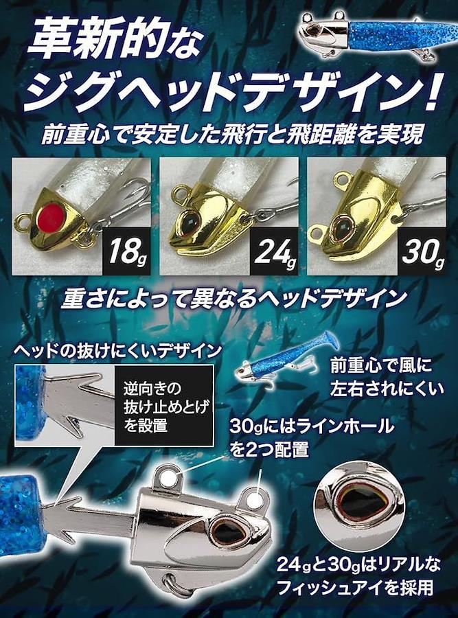 アイデザインにこだわり、18gにはスプレーペイントアイ、24gと30gには3Dフィッシングアイを採用。