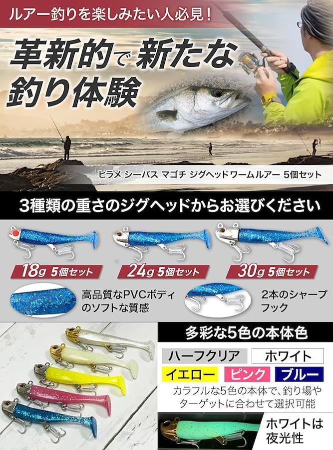 また、ブルー、ピンク、イエロー、ホワイト、ハーフクリアの5色展開で、釣り場やターゲットに合わせた使い分けが可能です。