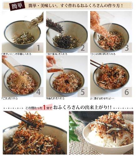 手作り佃煮セット おふくろさんは、原材料(長崎産いりこ・北海道産昆布・焼津産削り節・ごま)に同封の特製調味タレを混ぜるだけで簡単に佃煮がつくれます。